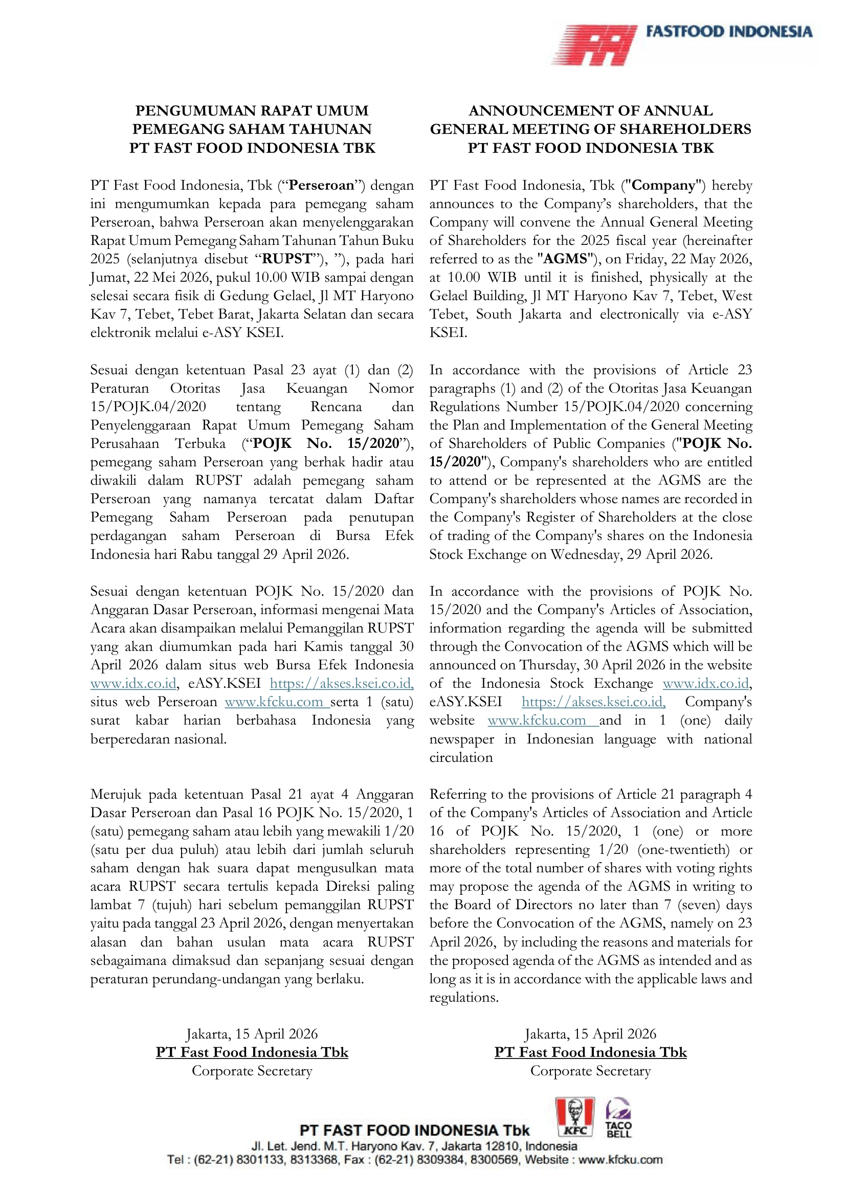 Surat Tata Tertib RUPSLB 30 Januari 2026